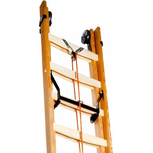 Tweedelige optrekladder met touw voor professioneel gebruik. De ladder kan worden opgetrokken tegen een gevel.